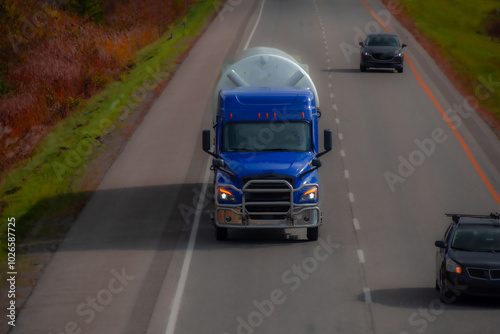 road, truck, highway, travel, transport, driving, transportation, vehicle, traffic, drive, speed, landscape, asphalt, motion, fall, autumn