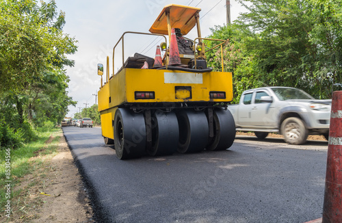 Heavy Vibration roller compactor at asphalt pavement works for road repairing