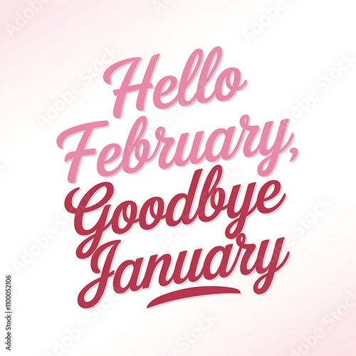 hallo, february, adieu, jan, month, change, winter, spring, season, adieu, welcome, new, beginning, end, time, calendar, date, day, week, year, greeting, script, lettering, typography, font, style, design, text, word, phrase, pink, red, colours, white, background, image, graphic, illustration, art, message