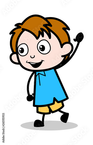 Hello Gesture - School Boy Cartoon Character Vector Illustration