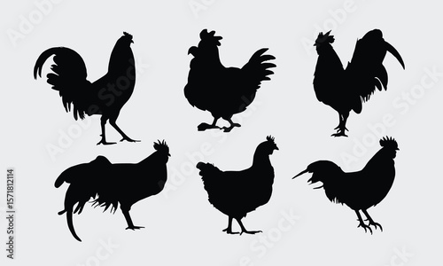 Hen Silhouette Bundle, Handmade calligraphy vector illustration, bags, stationary as a poster.