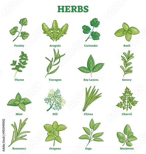 herb, plant, leaf, herbal, collection, spice, food, seasoning, organic, educational, labeled, set, nature, illustration, isolated, floral, garden, rosemary, fresh, summer, thyme, mint, parsley, botany, dill, green, ingredient, oregano, basil, culinary, healthy, sage, foliage, aromatic, seasonal, wild, peppermint, outline, concept, arugula, coriander, tarragon, bay, leaf, savoury, chives, chervil, marjoram