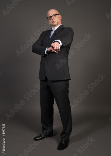 man, bald, spectacle, business, office, suit, cravat, smile, success, motivation, boss, boss, superior, gesture, jacket, victory, symbol