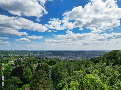 High Angle View of Historical Bath City of England United Kingdom During Partially Cloudy Day of May 27th, 2024, Aerial Footage Was Captured with Drone's Camera During Bright Sunny Day