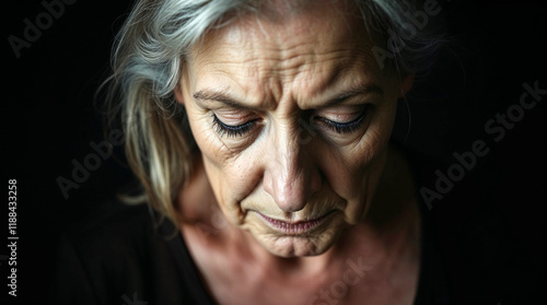 face, woman, senior, old, people, person, hair, sad, dark, expression, eye, closeup, black, looking, anger, elderly, 1, head, mature, studio, aged, stress, frown