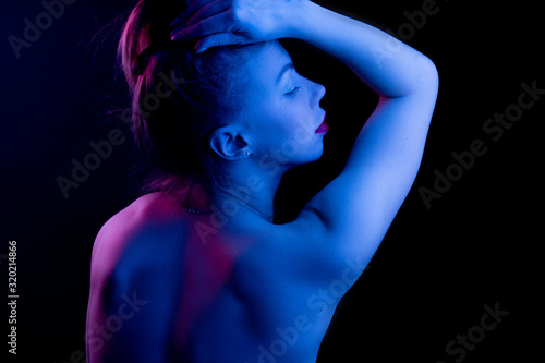 stand, back, beauty, beautiful, face, fashion, girl, woman, portrait, make-up, blue, colours, colourful, model, red, bright, vogue, background, sexy, style, art, dark, disco, light, posing, purple, many-coloured, black, many-coloured, neon, party, people, skin, light, make up, trend, trendy, high-coloured, creative, female, glamour, coloured, colourful, green, brilliance, glistering, high, abstract