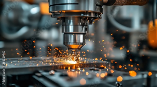 High precision CNC machine cutting metal with sparks flying in a modern manufacturing environment : Generative AI