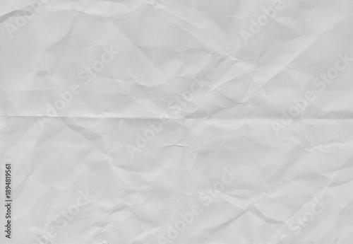 High resolution crumpled white paper texture with visible wrinkles and creases. Abstract vintage paper background suitable for design, templates and overlays.
