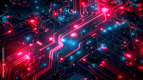 circuit, board, technology, background, high, red, blue, engineering, futuristic, light, computer, chips, electronic, processor, digital, pattern, motherboard, electrical, tech, hardware, concept, design, science, datum, texture, machine, modern, system, banner, no people, artificial, intelligence, vibrant, colours, horizontal
