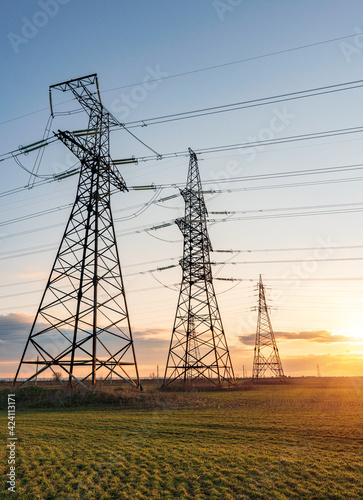 pylon, energy, electricity, power, industry, voltage, high, electric, sky, technology, cable, line, supply, tower, transmission, distribution, wire, environment, steel, station, danger, silhouette, volt, grid, transformer, sunset, pole, substation, network, grass, landscape, dusk, tall, pollution, current, watt, field, agricultural