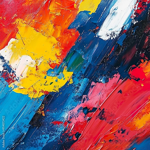High-energy abstract expressionism with bold color contrasts in a stunning photo