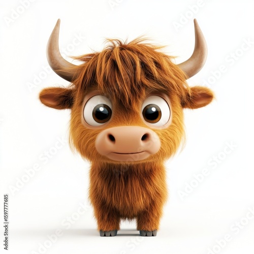 three-dimensional, highland cow, illustration, character, farm animal, adorable, colourful, friendly, highland, isolated, wildlife, buffalo, cartoon, element, graphic, minimal, animal, cattle, fluffy, mammal, brown, furry, horn, style, bull, cute, art, cow, toy, yak, three-dimensional