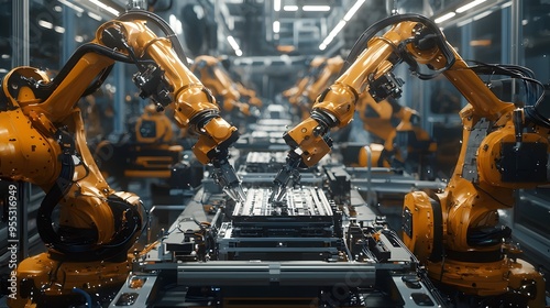 Highly Advanced Robotic Arms Performing Intricate Manufacturing Tasks in a Modern Factory