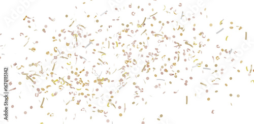 High-quality image of gold and pink confetti falling on a white background. Perfect for celebrations, parties, and festive designs.
