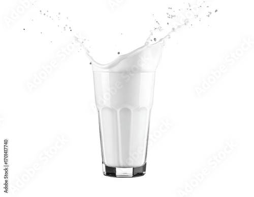 High-quality milk glass with splash effect isolated on transparent background PNG