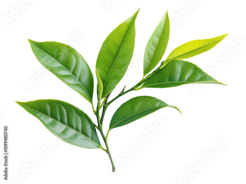 High-Quality PNG Green tea leaf Isolated on White Background – High Resolution