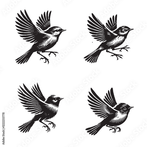 High-Quality Vector Silhouette of a Flying Canarian Chiffchaff on White Background"