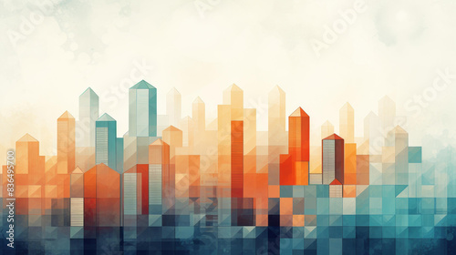Highres geometric cityscape background with modern urban architecture and skyline.
