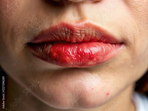 herpes, aerial photography, closeup, hi-res, realistic, detailed, texture, natural light, health, disease, disease, symptom, outbreak, infection, virus, blister, redness, swelling, pain, discomfort, treatment, medication, antiviral, prevention, care, photo, image, photo, picture, health care, dermatology, lesion, inflammation