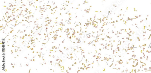 High-resolution image of gold and beige confetti on white background. Perfect for celebrations, party invitations, and festive designs.
