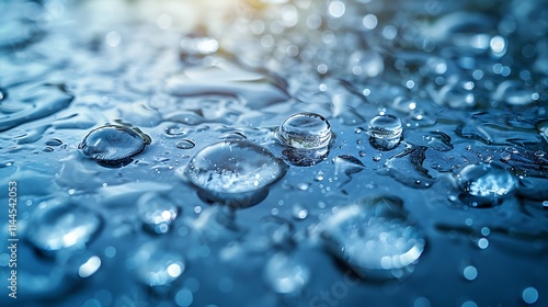 High-resolution macro image of water droplets accentuating their clarity on smooth blue-toned surface