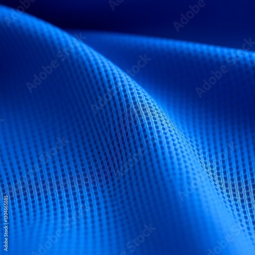 High-resolution stock photo Close-up detailed texture of a blue sports jersey fabric, showcasing its weave and subtle sheen. Commercial quality, professional lighting.
