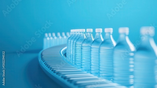 Highspeed conveyor belts transporting plastic bottles in a mass production facility