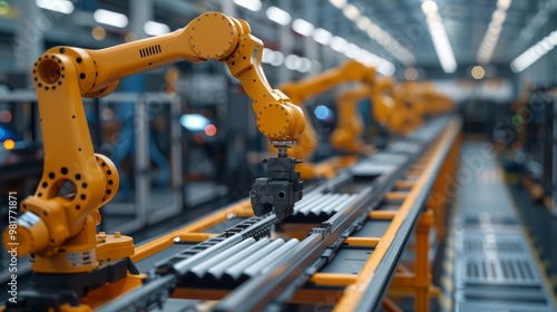 High-tech manufacturing plant, AI-controlled robotic arms assembling car parts, IoT systems optimizing performance, smart factory concept, advanced machinery