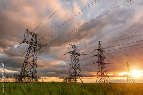 pylon, electricity, energy, industry, wheat, line, technology, tower, electric, green, high, industrial, power, sky, voltage, cable, environment, field, landscape, blue, electrical, plant, pole, supply, transmission, wire, background, danger, distribution, engineering, generator, grass, structure, metal, light, meadow, post, station, substation, tall, cloud, generation, morning, pollution, public, sunlight, sunshine
