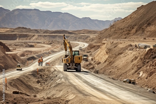 Highway construction in the desert, long straight road in the desert, High angle view on highway construction in a desertAi generated