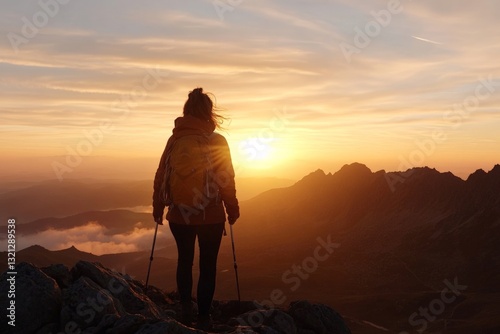 hiker, sunset, mountain, terrain, nature, exploration, adventure, sky, view, silhouette, trekking, wilderness, landscape, peaceful, travel, summit, scenery, calmness, backpack, evening, beauty, sunlight, cloud, horizon, relaxation, journey, exercise, freedom, lifestyle, altitude, solitude, natural, fresh air, environment, scenic, golden hour, climber, backpacking, orange sky, rugged, mythology, hiking trail, atmosphere, life events, breathtaking