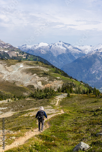 Hiker Exploring Scenic Alpine Trails with Snow-Capped Mountains in Whistler, BC, Canada