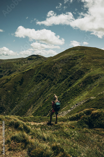 mountain, hiking, hiker, nature, trekking, landscape, people, adventure, travel, mountain, woman, hike, holiday maker, sky, walking, sport, summer, backpack, rock, walk, path, backpacker, active, hill