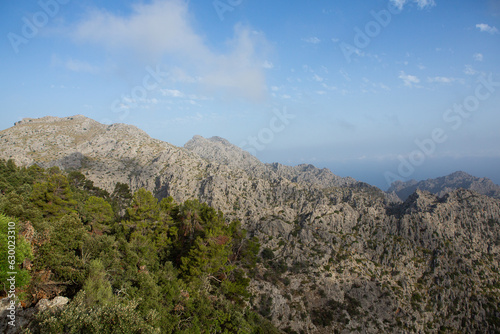 Hiking holidays Mallorca, Spain. Beautiful picture with landscape of Serra de Tramuntana mountains in the island of Majorca in Mediterranean sea. Paradise for bikers. Adventure travel.