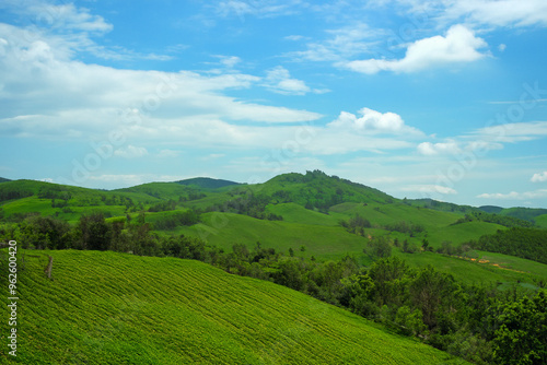 hill, nature, grass, sky, mountain, summer, tree, meadow, panoramic, springtime, sunlight, sun, outdoors, environment, travel, horizontal, no people, panorama, photo, color image, green, rural scene, background, beautiful, landscape, season, spring, view, scenery, sunbeam, vale, italy, german, rural, scenic, tuscany, alpine, alps, beauty, blue, cloud, country, field, flower, sunny, agriculture, ai