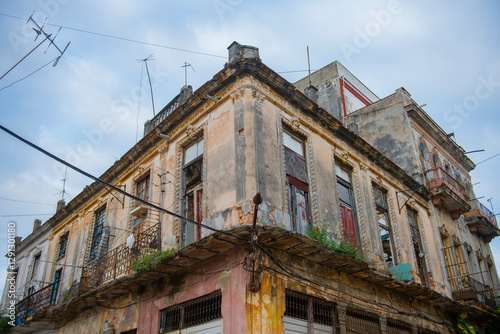 Historic buildings on Calle Acosta Street at Calle San Ignacio Street in Old Havana (La Habana Vieja), Cuba. Old Havana is a World Heritage Site.