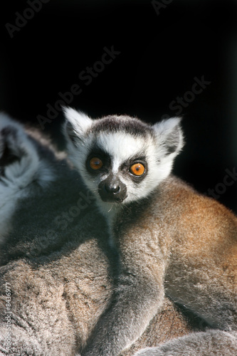 lemur, primate, animal, mammal, outdoors, nature, wildlife, wild animal, endangered species, curious, alert, closeup, blurred background, staring, looking, watching, baby, young, carrying, cute, funny