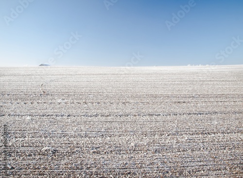 Hoarfrost on winter field