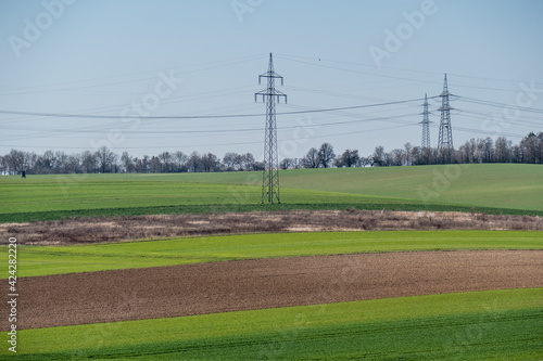 pylon, stream, energy, pylon, electricity, tree, countryside, field, infrastructure, duct, high voltage, cable, technology, power plant, engineering, line, we