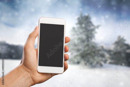 holding, phone, smartphone, winter, background, blank, boy, call, mobile phone, cold, concept, country, countryside, device, forest, frame, glacé, glove, hand, happy, hiking, cyberspace, lifestyle, man, map, message, mitten, mobile, mock, nature