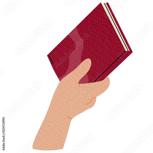 Holding closed book, sharing knowledge. Education, reading concept. Hand taking, giving textbook, studying literature. Student with notebook. Flat vector illustration isolated on white background