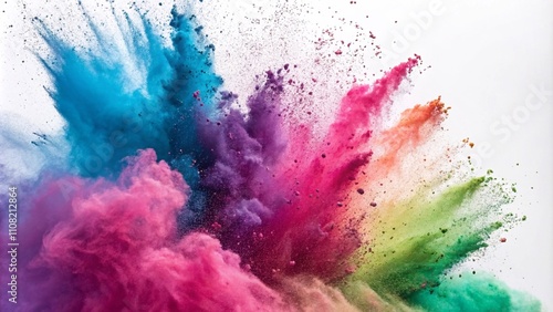 Holi paint color powder explosion isolated on white background