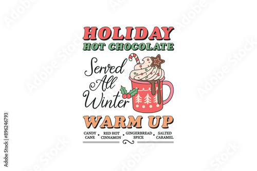 Holiday Hot Chocolate , Retro Christmas SVG Sublimation Design