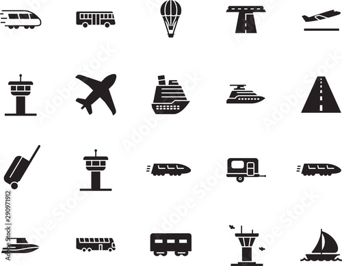 holiday vector icon set such as: wind, voyage, bag, balloon, sail, rv, carriage, airways, circle, metal, departures, baggage, shipping, liner, car, camper, departure, case, truck, pictogram, trailer