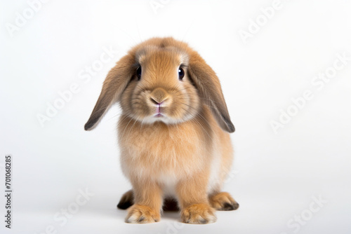Holland Lop Rabbit sitting on a white background. Animal front portrait.