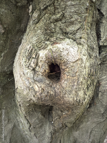 Hollow in tree bark with detailed textures, ideal for nature backgrounds, forest exploration, rustic organic design concepts