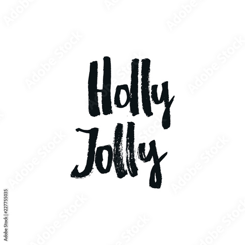 Holly Jolly - Christmas and New Year phrase. Handwritten modern lettering for cards, posters, t-shirts, etc.