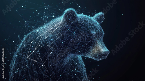animal, concept, art, vector, nature, light, technology, forest, geometric, low, hologram, laser, energy, grizzly, drawing, flux, face, portrait, predator, fur, carnivore, teddy, virtual, wireframe, ursus, line, mesh, network, triangle, powerful, brown, flickering, mammal, structure, particle, wild, connect, print, crystal, closeup, dot, dangerous, zoology, bear, cute, tech, futuristic, wildlife