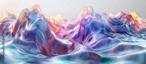 holographic, three-dimensional, mountain, gradient, vibrant, many-coloured, shape, artistic, modern, design, abstract, colourful, texture, visual, illustration, digital artwork, creative, futuristic, contemporary, surreal, landscape, render, flowing, wave, peak, art, beauty, bright, dynamic, elegant, fantasy, graphic, luxury, majestic, pastel, pattern, silky, smooth, soft, stylish, unique, virtual, wallpaper