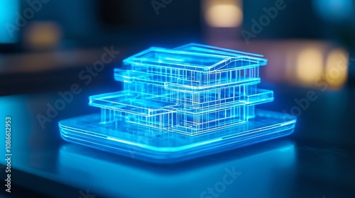 hologram, blueprint, architectural, projection, technology, futuristic, digital, three-dimensional, wireframe, abstract, model, engineering, design, innovation, structure, interior, exterior, building, visualisation, render, architecture, construction, planning, development, modern, concept, minimal, outline, grid, glowing